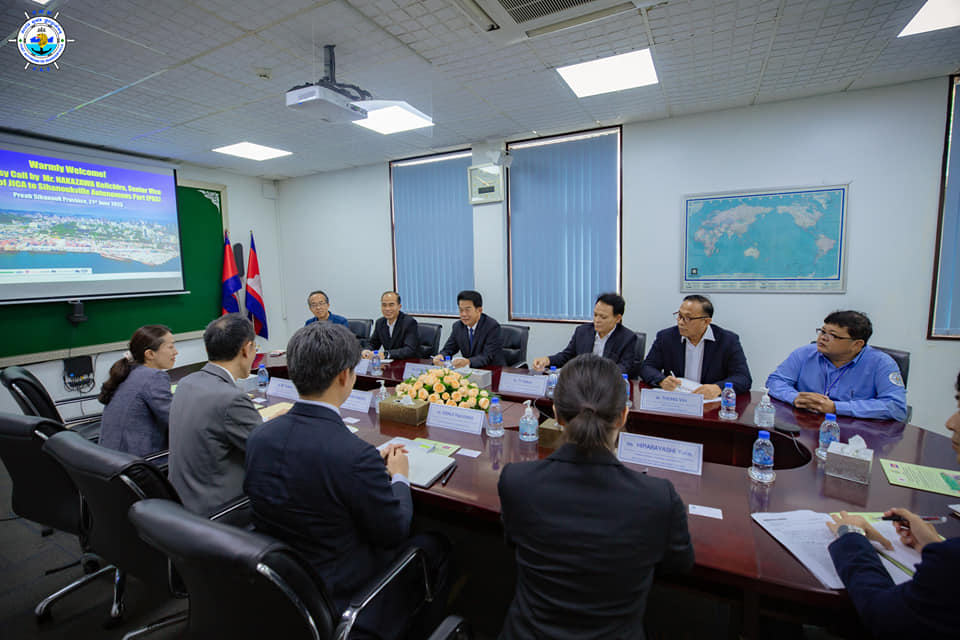 កំពង់ផែស្វយ័តក្រុងព្រះសីហនុ (កសស) នៅវេលាម៉ោង ៣ រសៀល ថ្ងៃពុធ ៤ កើត ខែបឋមាសាឍ ឆ្នាំថោះ បញ្ចស័ក ពុទ្ធសករាជ ២៥៦៧ ត្រូវនឹងថ្ងៃទី២១ ខែមិថុនា ឆ្នាំ២០២៣ នៅសាលប្រជុំតូច កសស ឯកឧត្តម លូ គឹមឈន់ ប្រតិភូរាជរដ្ឋាភិបាលកម្ពុជា ទទួលបន្ទុកជាប្រធានអគ្គនាយក កំពង់ផែស្វយ័តក្រុងព្រះសីហនុ និងថ្នាក់ដឹកនាំ កសស បានទទួលស្វាគមន៍ ដំណើរទស្សនកិច្ចសម្តែងការគួរសម របស់ក្រុមការងារទីភ្នាក់ងារសហប្រតិបត្តិការអន្តរជាតិជប៉ុន (JICA) ដឹកនាំដោយ លោក NAKAZAWA Keiichiro អនុប្រធានជាន់ខ្ពស់នៃ JICA ក្នុងគោលបំណងស្វែងយល់អំពីវឌ្ឍនភាព និងការអភិវឌ្ឍរបស់ កសស