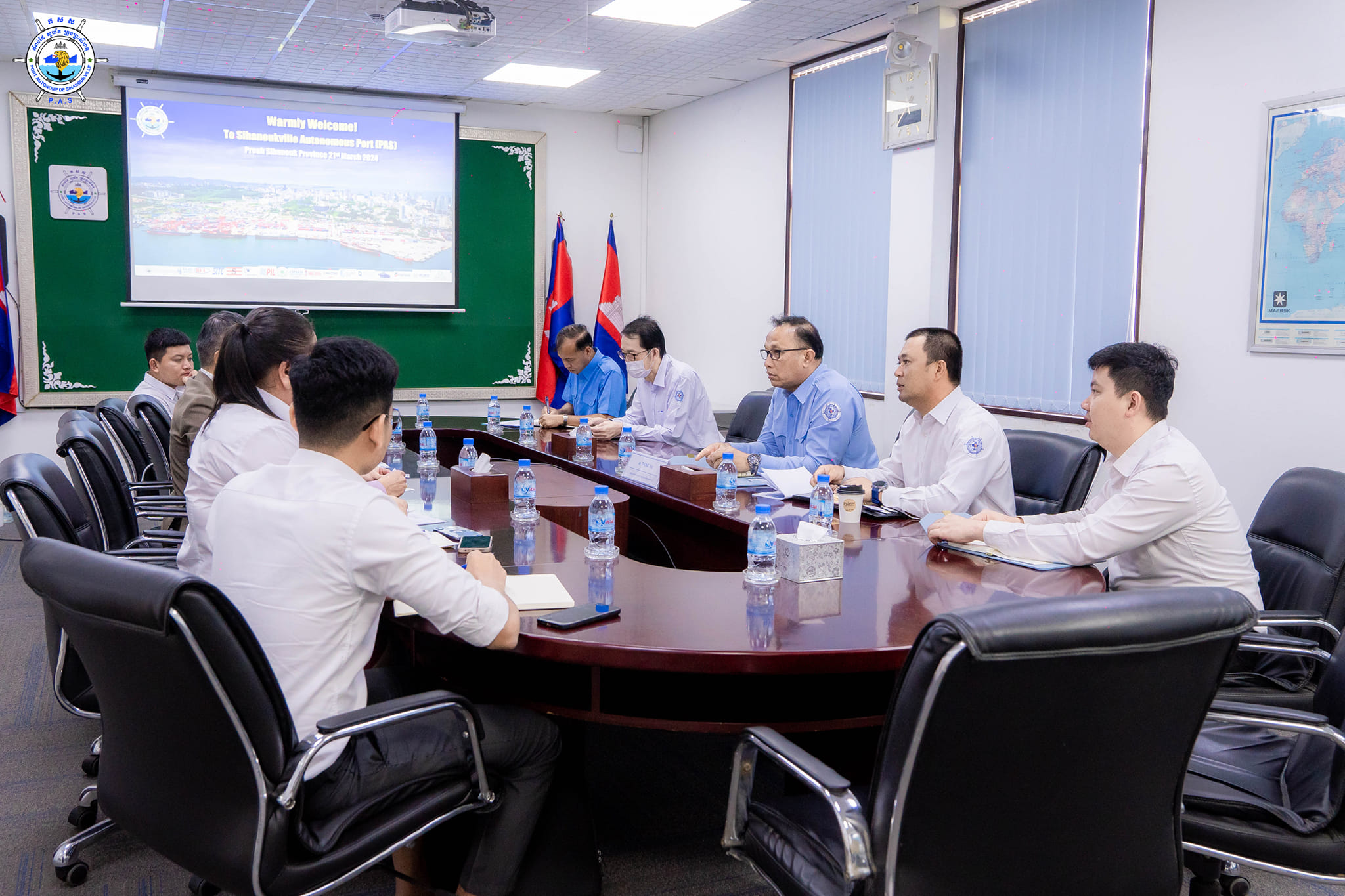 លោក ថោង វីរ៉ូ អគ្គនាយករង ទទួលបន្ទុករដ្ឋបាល-គ្រប់គ្រង តំណាង ឯកឧត្តម លូ គឹមឈន់ ប្រតិភូរាជរដ្ឋាភិបាលកម្ពុជា ទទួលបន្ទុកជាប្រធានអគ្គនាយក កំពង់ផែស្វយ័តក្រុងព្រះសីហនុ និងថ្នាក់ដឹកនាំ កសស បានទទួលស្វាគមន៍ដំណើរទស្សនកិច្ច ក្រុមហ៊ុន Kintetsu World Express (Cambodia)។ កំពង់ផែស្វយ័តក្រុងព្រះសីហនុ (កសស) ៖ នាម៉ោង ១០ ព្រឹក ថ្ងៃព្រហស្បតិ៍ ១២ កើត ខែផល្គុន ឆ្នាំថោះ បញ្ចស័ក ពុទ្ធសករាជ ២៥៦៧ ត្រូវនឹងថ្ងៃទី២១ ខែមីនា ឆ្នាំ២០២៤ នៅសាលប្រជុំតូច កសស លោក ថោង វីរ៉ូ អគ្គនាយករង ទទួលបន្ទុករដ្ឋបាល-គ្រប់គ្រង តំណាង ឯកឧត្តម លូ គឹមឈន់ ប្រតិភូរាជរដ្ឋាភិបាលកម្ពុជា ទទួលបន្ទុកជាប្រធានអគ្គនាយក កំពង់ផែស្វយ័តក្រុងព្រះសីហនុ និងថ្នាក់ដឹកនាំ កសស បានទទួលស្វាគមន៍ ដំណើរទស្សនកិច្ច ក្រុមហ៊ុន Kintetsu World Express (Cambodia) ក្នុងគោលបំណង ពិភាក្សាអំពីប្រព័ន្ធប្រតិបត្តិការ របស់ កសស។