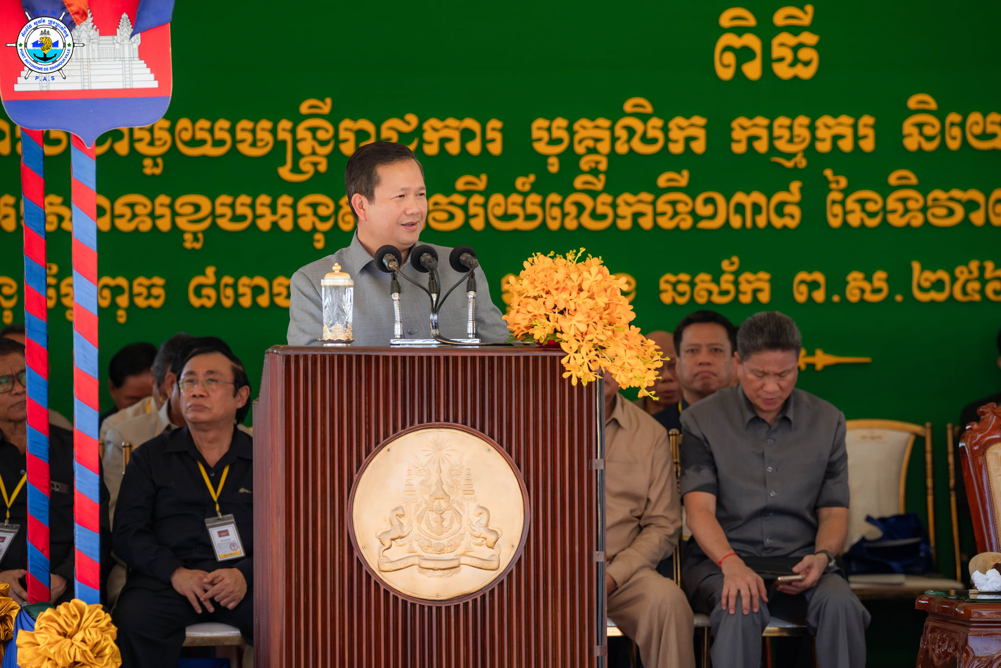 ពិធីសំណេះសំណាលជាមួយមន្រ្តីរាជការ បុគ្គលិក កម្មករនិយោជិត កំពង់ផែស្វយ័តក្រុងព្រះសីហនុ នាឱកាសអបអរសាទរខួបអនុស្សាវរីយ៍លើកទី ១៣៨ នៃទិវាពលកម្មអន្តរជាតិ ០១ ឧសភា ក្រោមអធិបតីភាពដ៏ខ្ពង់ខ្ពស់របស់ សម្តេចមហាបវរធិបតី ហ៊ុន ម៉ាណែត នាយករដ្ឋមន្ត្រី នៃព្រះរាជាណាចក្រកម្ពុជា។ កំពង់ផែស្វយ័តក្រុងព្រះសីហនុ (កសស) នៅវេលាម៉ោង ៨ ព្រឹក ថ្ងៃពុធ ៨រោច ខែចេត្រ ឆ្នាំរោង ឆស័ក ពុទ្ធសករាជ ២៥៦៧ ត្រូវនឹងថ្ងៃទី១ ខែឧសភា ឆ្នាំ២០២៤ នៅចំណតផែពហុបំណង កសស សម្តេចមហាបវរធិបតី ហ៊ុន ម៉ាណែត នាយករដ្ឋមន្ត្រី នៃព្រះរាជាណាចក្រកម្ពុជា បានអញ្ជើញជាអធិបតីដ៏ខ្ពង់ខ្ពស់ ក្នុងពិធីសំណេះសំណាលជាមួយមន្រ្តីរាជការ បុគ្គលិក កម្មករនិយោជិតកំពង់ផែស្វយ័តក្រុងព្រះសីហនុនាឱកាសអបអរសាទរ ខួបអនុស្សាវរីយ៍លើកទី ១៣៨ នៃទិវាពលកម្មអន្តរជាតិ ០១ ឧសភា