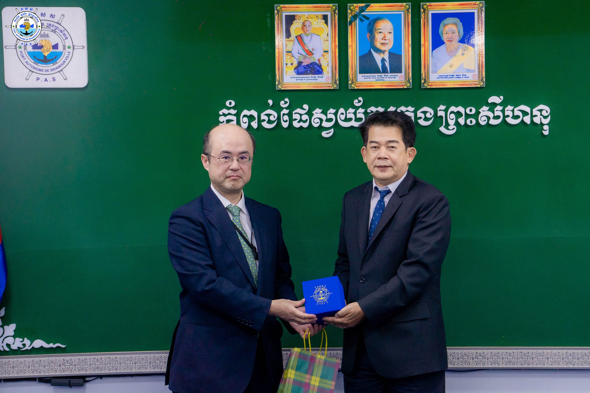 Sihanoukville Autonomous Port (PAS) : At 3 PM on Monday, 2nd December 2024, at the venue of PAS Meeting Room, His Excellency Lou Kim Chhun, Delegate of the Royal Government of Cambodia in charge as Chairman and CEO of Sihanoukville Autonomous Port and PAS Management, received a courtesy visit of and held a discussion meeting with Mr. Kenzo NAKAGAWA, Director of the International Affairs and Industrial Port Policy Division, Ports and Harbors Bureau, Ministry of Land, Infrastructure, Transport and Tourism (MLIT) of Japan, regarding a technical cooperation in the port sector