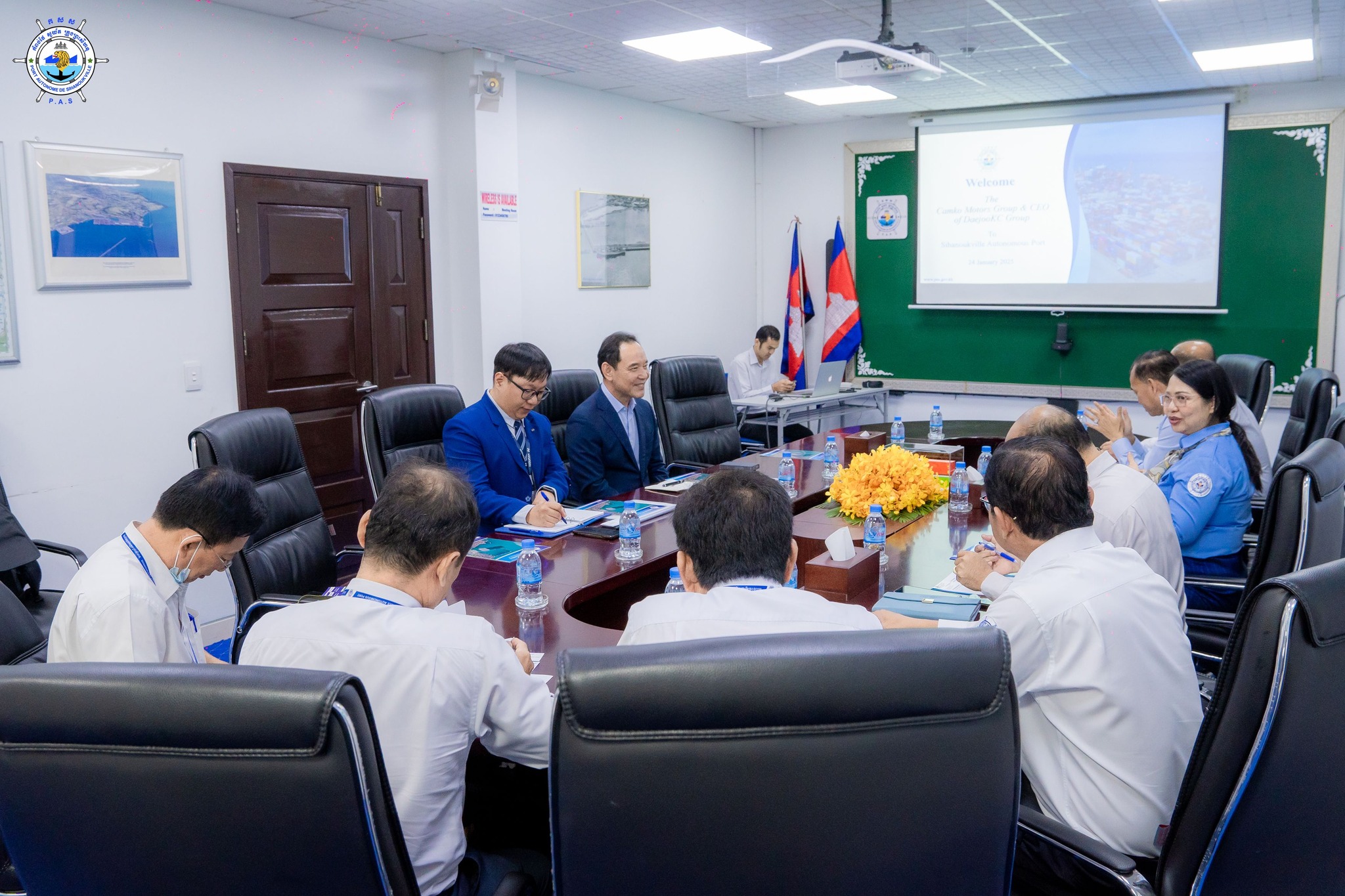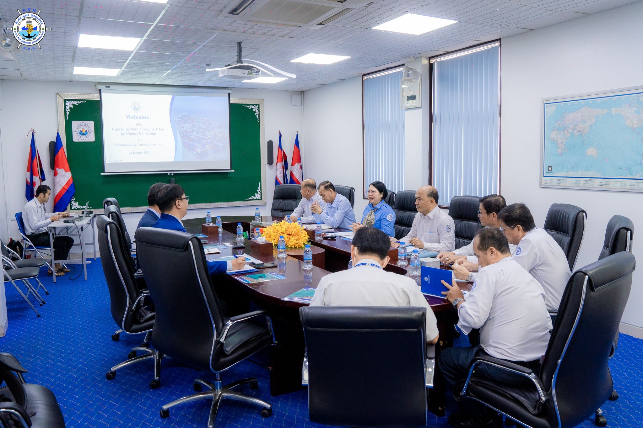 កំពង់ផែស្វយ័តក្រុងព្រះសីហនុ (កសស) ៖ នាវេលាម៉ោង ១១ ព្រឹក ថ្ងៃសុក្រ ១១ រោច ខែបុស្ស ឆ្នាំរោង ឆស័ក ពុទ្ធសករាជ ២៥៦៨ ត្រូវនឹងថ្ងៃទី២៤ ខែមករា ឆ្នាំ២០២៥ នៅសាលប្រជុំតូច កសស លោកស្រី ជ័យ សុគន្ធា នាយិកា នៃនាយកដ្ឋានទីផ្សារ កសស លោក ថៃ ម៉េងលី នាយក នៃនាយកដ្ឋាន ប្រតិបត្តិការទីលានកុងតឺន័រ កសស និងលោក ងួន រតនា នាយក នៃនាយកដ្ឋាន អាជីវកម្ម កសស តំណាង ឯកឧត្តម លូ គឹមឈន់ ប្រតិភូរាជរដ្ឋាភិបាលកម្ពុជា ទទួលបន្ទុកជាប្រធានអគ្គនាយក កំពង់ផែស្វយ័តក្រុងព្រះសីហនុ និងថ្នាក់ដឹកនាំ កសស បានបើកកិច្ចប្រជុំពិភាក្សាការងារជាមួយ ក្រុមហ៊ុន Camko Motor Group & CEO ស្តីពីកិច្ចសហប្រតិបត្តិការអាជីវកម្ម