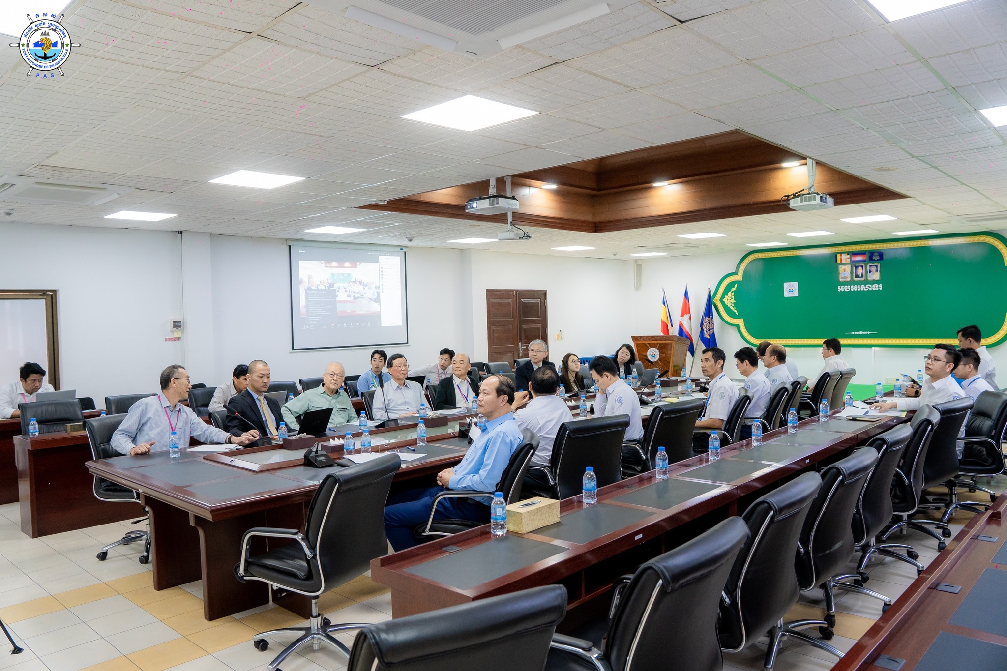 កំពង់ផែស្វយ័តក្រុងព្រះសីហនុ (កសស) ៖ នាវេលាម៉ោង ១០ ព្រឹក ថ្ងៃពុធ ៦ រោច ខែផល្គុន ឆ្នាំរោង ឆស័ក ពុទ្ធសករាជ ២៥៦៨ ត្រូវនឹងថ្ងៃទី១៩ ខែមីនា ឆ្នាំ២០២៥ នៅសាលប្រជុំធំ កសស លោក ទី សាគុណ អគ្គនាយករង ទទួលបន្ទុកបច្ចេកទេស តំណាង ឯកឧត្តម លូ គឹមឈន់ ប្រតិភូរាជរដ្ឋាភិបាលកម្ពុជា ទទួលបន្ទុកជាប្រធានអគ្គនាយក កំពង់ផែស្វយ័តក្រុងព្រះសីហនុ និងថ្នាក់ដឹកនាំ កសស បានបើកកិច្ចប្រជុំចាប់ផ្តើម "Kick-Off Meeting" សម្រាប់ការផ្គត់ផ្គង់គ្រឿងចក្រលើកដាក់ទំនិញ (កញ្ចប់ទី២) នៃគម្រោងអភិវឌ្ឍន៍ចំណតផែកុងតឺន័រថ្មីទឹកជ្រៅថ្មី កំពង់ផែក្រុងព្រះសីហនុ-ជំហានទី ១ ជាមួយក្រុមហ៊ុនផ្គត់ផ្គង់: MITSUI E&S Co., Ltd.