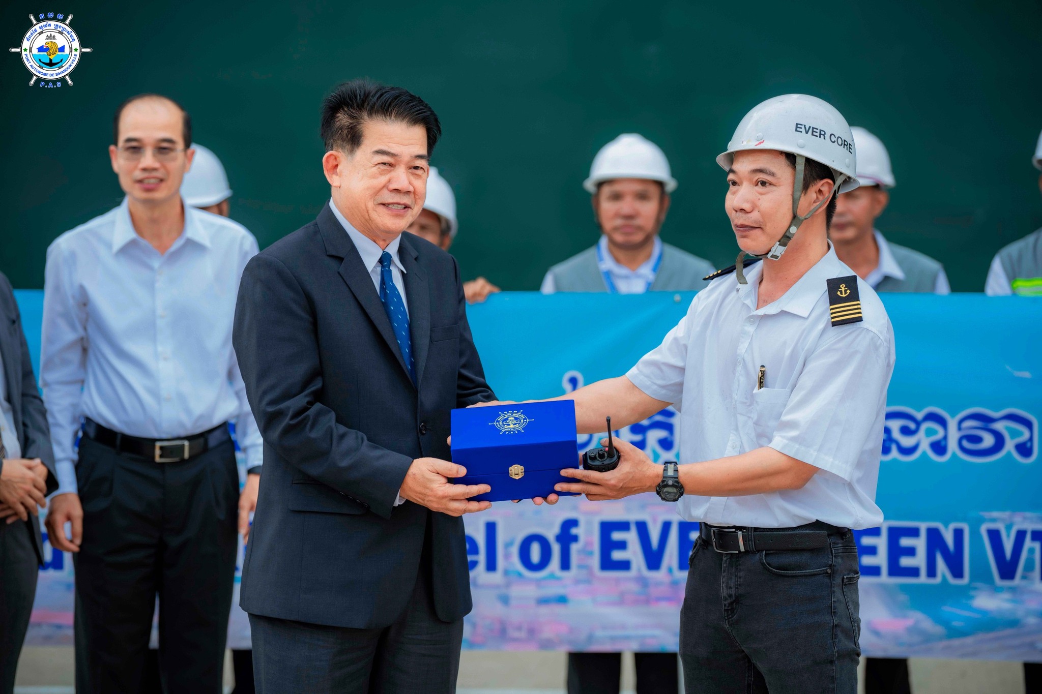 កំពង់ផែស្វយ័តក្រុងព្រះសីហនុ (កសស) ៖ នាវេលាម៉ោង ៣:៣០ នាទីរសៀល ថ្ងៃអង្គារ ១០ រោច ខែចេត្រ ឆ្នាំរោង សប្តស័ក ពុទ្ធសករាជ ២៥៦៨ ត្រូវនឹងថ្ងៃទី២២ ខែមេសា ឆ្នាំ២០២៥ នៅចំណតផែ កសស លេខ ៦ ឯកឧត្តម លូ គឹមឈន់ ប្រតិភូរាជរដ្ឋាភិបាលកម្ពុជា ទទួលបន្ទុកជាប្រធានអគ្គនាយក កំពង់ផែស្វយ័តក្រុងព្រះសីហនុ និងថ្នាក់ដឹកនាំ កសស បានទទួលស្វាគមន៍ បញ្ជាការនាវា EVER CORE នៃក្រុមហ៊ុននាវា EVERGREEN VTS SERVICE ធ្វើដំណើរមកកាន់ កសស ។ នេះគឺជាការធ្វើដំណើរ នៃនាវាទី២ ប្រចាំសប្តាហ៍ របស់ក្រុមហ៊ុននាវា EVERGREEN VTS SERVICE មកកាន់ កសស ហើយក៏បង្ហាញអំពីភាពរីកចម្រើន នៃការតភ្ជាប់ការដឹកជញ្ជូនតាមសមុទ្ររបស់ កសស ជាមួយបណ្តាក្រុមហ៊ុននាវា