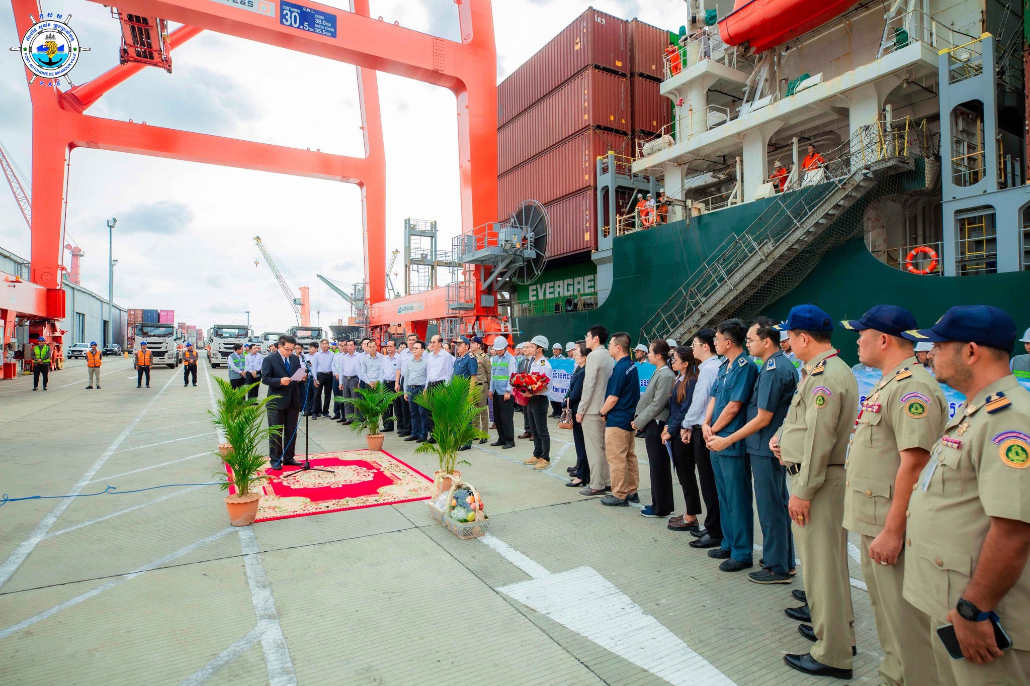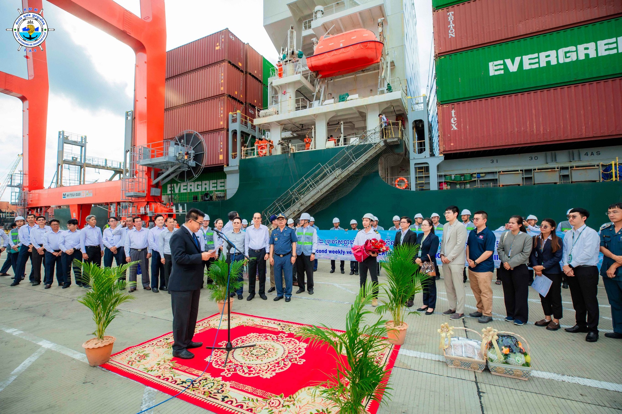 ពិធីស្វាគមន៍ដំណើរមកដល់ នៃនាវាទី២ ប្រចាំសប្តាហ៍ របស់ក្រុមហ៊ុននាវា EVERGREEN VTS SERVICE មកកាន់ កំពង់ផែស្វយ័តក្រុងព្រះសីហនុ