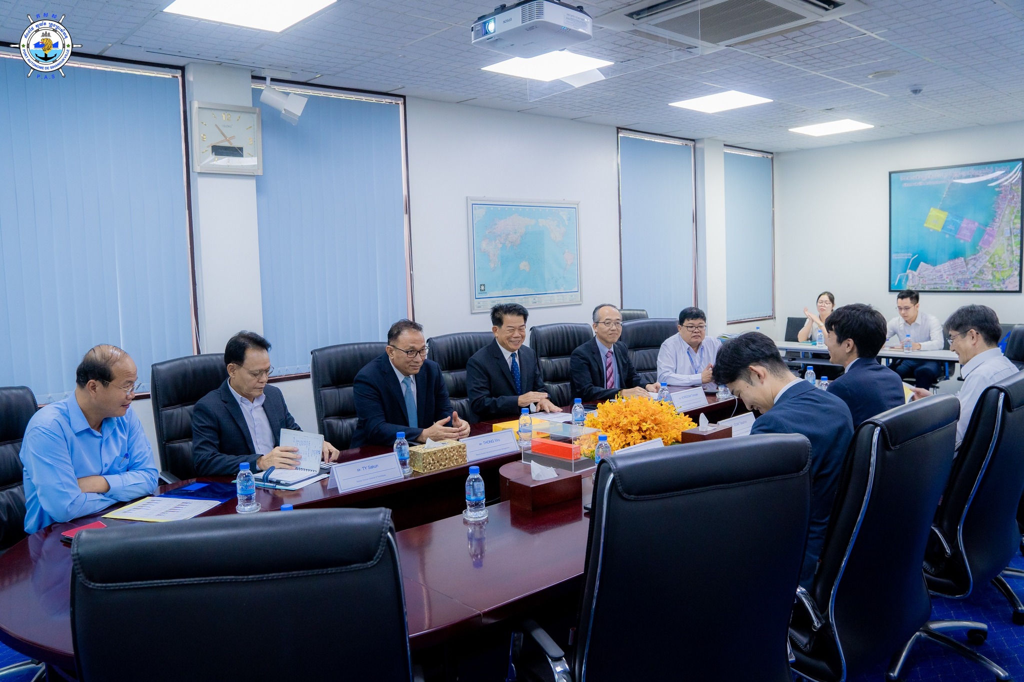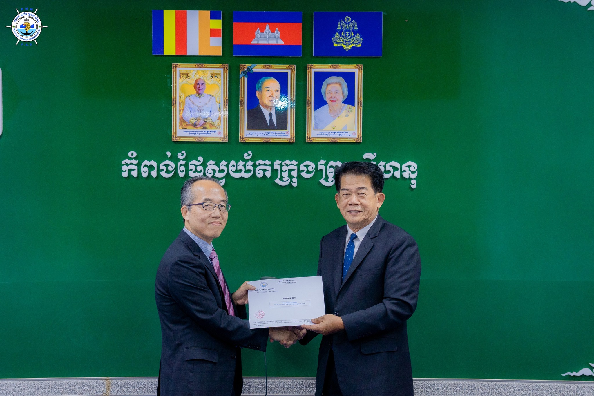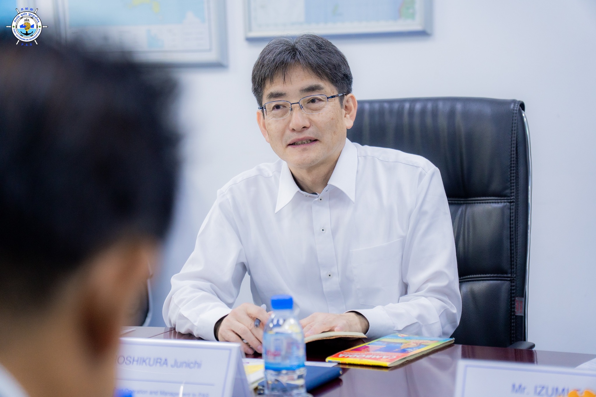 ដំណើរទស្សនកិច្ចសម្តែងការគួរសមរបស់ អ្នកជំនាញ JICA និងសមាជិកនៃ ការិយាល័យ JICA ប្រចាំប្រទេសកម្ពុជា មកកាន់ កំពង់ផែស្វយ័តក្រុងព្រះសីហនុ កំពង់ផែស្វយ័តក្រុងព្រះសីហនុ (កសស) ៖ នាវេលាម៉ោង ១១ ព្រឹក ថ្ងៃពុធ ៩ កើត ខែជេស្ឋ ឆ្នាំម្សាញ់ សប្តស័ក ពុទ្ធសករាជ ២៥៦៩ ត្រូវនឹងថ្ងៃទី៤ ខែមិថុនា ឆ្នាំ២០២៥ នៅសាលប្រជុំតូច កសស ឯកឧត្តម លូ គឹមឈន់ ប្រតិភូរាជរដ្ឋាភិបាលកម្ពុជា ទទួលបន្ទុកជាប្រធានអគ្គនាយក កំពង់ផែស្វយ័តក្រុងព្រះសីហនុ និងថ្នាក់ដឹកនាំ កសស បានទទួលស្វាគមន៍ ដំណើរទស្សនកិច្ចសម្តែងការគួរសមរបស់ លោក KOREZUMI Tomoaki ដែលនឹងបញ្ចប់បេសកកម្មការងារជាទីប្រឹក្សា កសស ដែលនឹងមានអ្នកបន្តវេនបេសកកម្មការងារបន្ត គឺលោក HOSHIKURA Junichi និងលោក IZUMI Takahiro អ្នកតំណាងនៃ JICA ប្រចាំប្រទេសកម្ពុជា ដែលនឹងបញ្ចប់បេសកកម្មការងារ ដែលនឹងមានអ្នកបន្តវេនបេសកកម្មការងារបន្ត គឺលោក MIYAMOTO Rintaro។ ក្នុងឱកាសនេះផងដែរ លោក KOREZUMI Tomoaki និងលោក MIYAMOTO Rintaro បានផ្តល់តំលៃខ្ពស់ចំពោះកិច្ចសហប្រតិបត្តិការរបស់ កសស ក្នុងពេលកន្លងមក ក្រោមការដឹកនាំដ៏ឈ្លាសវៃ និងប៉ិនប្រសព្វរបស់ ឯកឧត្តម លូ គឹមឈន់ ប្រតិភូរាជរដ្ឋាភិបាលកម្ពុជា ទទួលបន្ទុកជាប្រធានអគ្គនាយក កំពង់ផែស្វយ័តក្រុងព្រះសីហនុ ក្នុងការអភិវឌ្ឍ កសស។