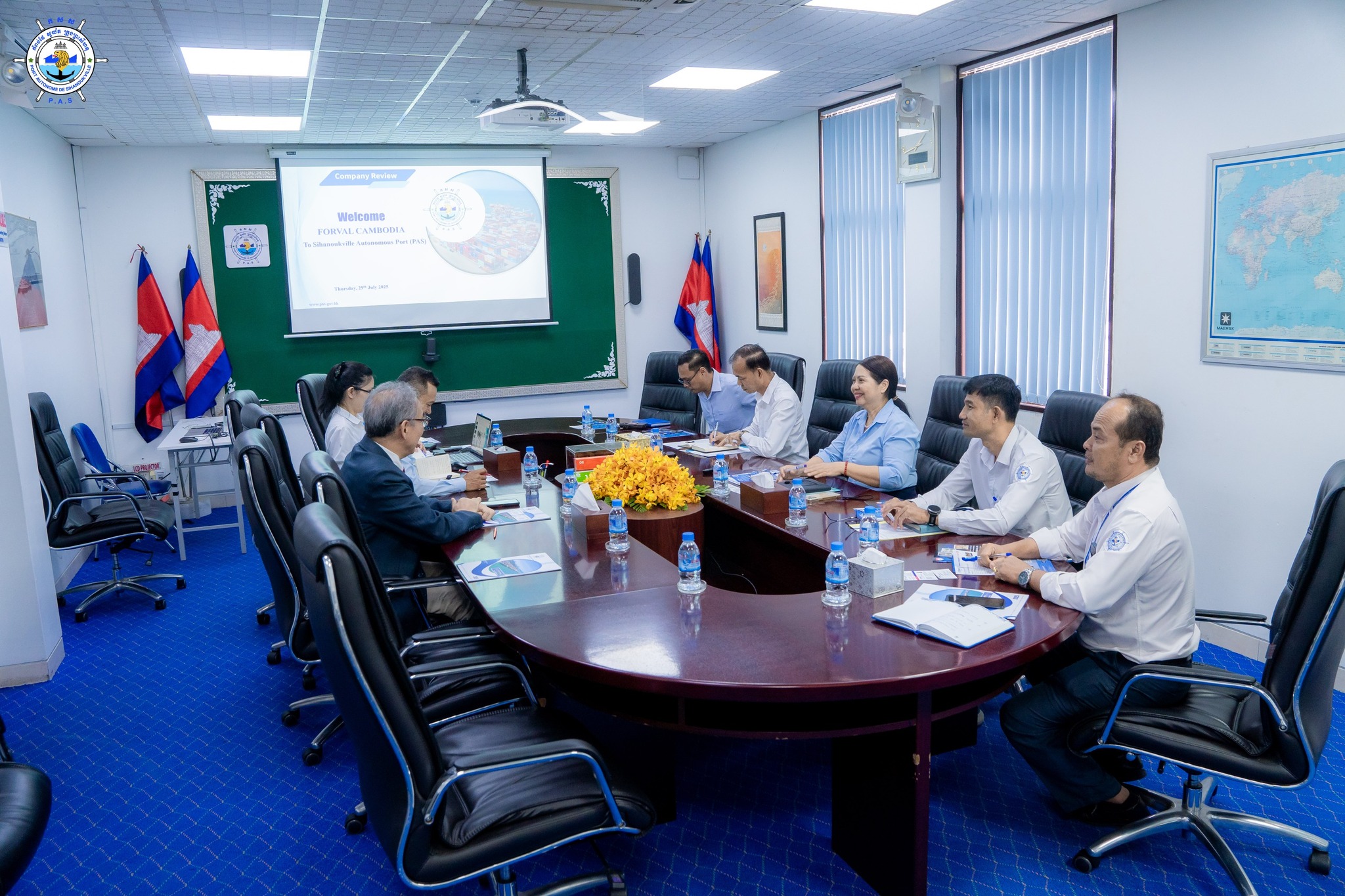 ដំណើរទស្សនកិច្ច ក្រុមហ៊ុន Forval (Cambodia) មកកាន់ កំពង់ផែស្វយ័តក្រុងព្រះសីហនុ កំពង់ផែស្វយ័តក្រុងព្រះសីហនុ (កសស) ៖ នាវេលាម៉ោង ២ រសៀល ថ្ងៃអង្គារ ៤ កើត ខែស្រាពណ៍ ឆ្នាំម្សាញ់ សប្តស័ក ពុទ្ធសករាជ ២៥៦៩ ត្រូវនឹងថ្ងៃទី២៩ ខែកក្កដា ឆ្នាំ២០២៥ នៅសាលប្រជុំតូច កសស លោកស្រី ជ័យ សុគន្ធា នាយិកា នៃនាយកដ្ឋានទីផ្សារ និង លោក ងួន រតនា នាយក នៃនាយកដ្ឋានអាជីវកម្ម តំណាង ឯកឧត្តម លូ គឹមឈន់ ប្រតិភូរាជរដ្ឋាភិបាលកម្ពុជា ទទួលបន្ទុកជាប្រធានអគ្គនាយក កំពង់ផែស្វយ័តក្រុងព្រះសីហនុ និងក្រុមការងារ កសស បានទទួលស្វាគមន៍ ដំណើរទស្សនកិច្ច ក្រុមហ៊ុន Forval (Cambodia) ដឹកនាំដោយ លោក Takeharu Mizukoshi អគ្គនាយក នៃក្រុមហ៊ុន Forval (Cambodia) ក្នុងគោលបំណងស្វែងយល់អំពី ដំណើរការប្រតិបត្តិការ អាជីវកម្មសំខាន់ៗ និងការអភិវឌ្ឍនៃវិស័យ ICT របស់ កសស។